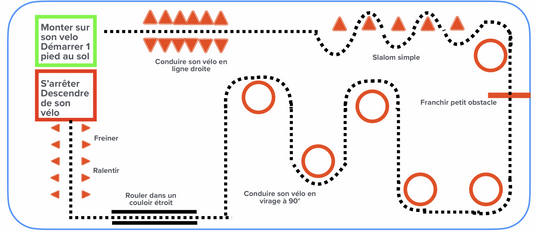 - Séance 2 - Maniabilité et agilité : Maîtriser son vélo. Exercices pratiques : slalom , virages, passage dans un couloir étroit , freinage d'urgence et apprentissage de la prise d'information en roulant.
