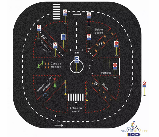 - Séance 3 - Circuler en sécurité : Circuler sereinement. Révision de la signalisation essentielle , apprentissage de la communication avec les autres usagers, positionnement sur la chaussée et mises en situation réelles.